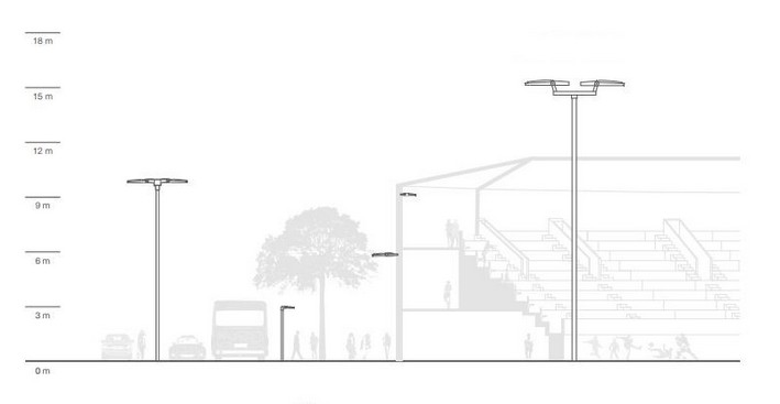 ![]() | MRZ 5717. Proyector para iluminación de grandes áreas, instalaciones deportivas, vías de tránsito, exposiciones, carteles publicitarios, monumentos y fachadas. Montaje y enfoque ajustable. Se alcanzan los niveles de mayor flujo lumínico entre alturas que varías desde 4 a 15 mts. Cuerpo de aluminio inyectado con espejo central y laterales de aluminio abrillantado de alta pureza (99%) de superficie lisa o gofrada. Cierre mediante una vítrea templada inastillable, resistente a golpes y al impacto térmico, con junta de goma siliconada IP54. Apertura frontal mediante dos bisagras de acero inoxidable. Caja porta equipo de chapa galvanizada aislada térmicamente del proyector sujeto por su parte posterior ventilada con IP43. Contiene borneras de conexión, tornillo de puesta a tierra y cables de goma siliconada aptas para soportar temperaturas de hasta 200º C. Portalámparas normalizado E40 con freno y pistón. El mismo con contra-punta de hierro zincado y aislación de fibra de vidrio para mejorar la fijación y evitar movimiento de la lámpara. Opcional con marco en fundición de aluminio para una apertura más rápida y vidrio con film protector de 3 mm. Normalizado IRAM - Fabricación Nacional. |