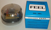 Fotocontrol marca FEEL. Según normas IRAM, diseñado para luminarias de alumbrado público hasta 2000W con desconexión a 50Lux y retardo de 15 segundos contra destellos que puedan provocar falsas maniobras. | |